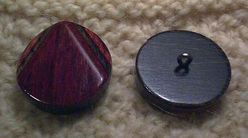 they're... buttons. Not the shirt-button kind with the holes all the way through, the toggle-ish kind where the button's a solid piece and there's a loop on the back.
